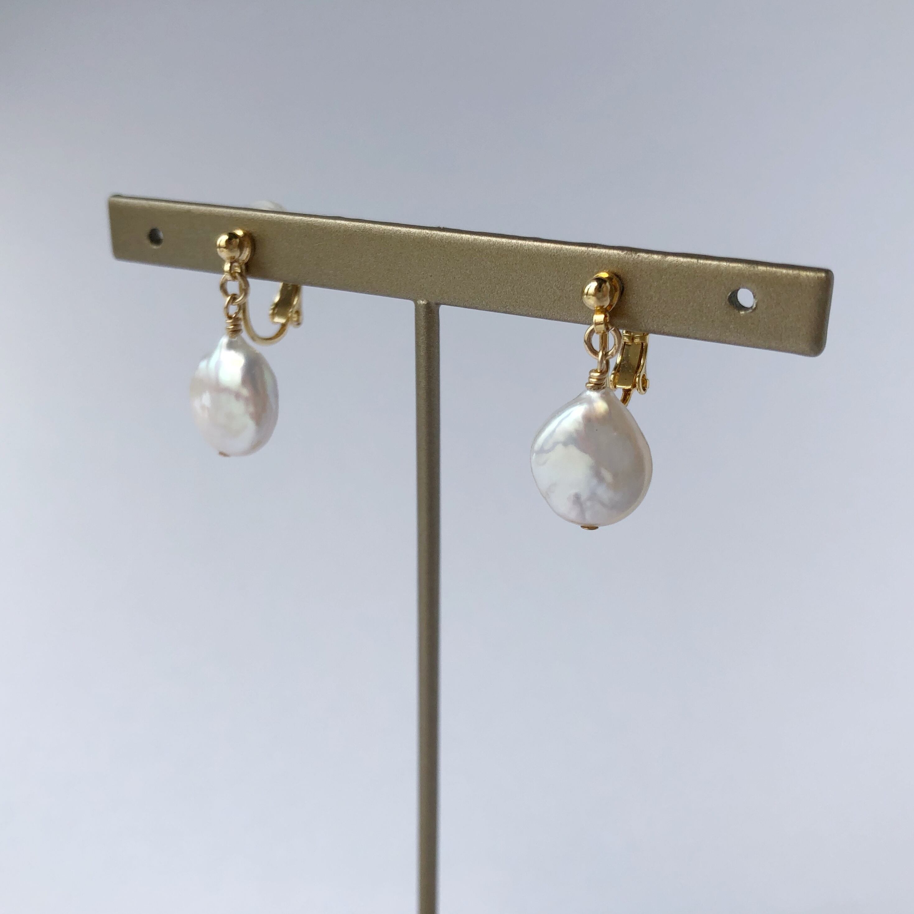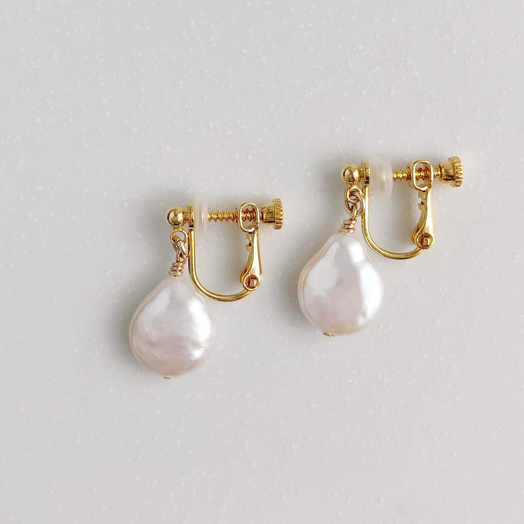 ※イヤリング金具は、メッキのため、汗や香水など汚れに弱く、劣化する素材です。使用後は、柔らかい布で優しく拭き取りジップ付きの袋に入れると比較的長持ちします。長くお使いいただけるように、イヤリング金具の変更も行っています。