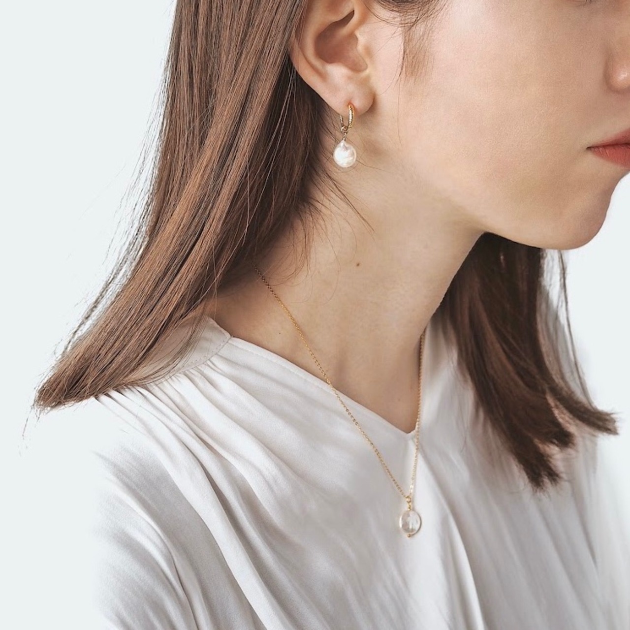 ※着用写真はサンプルです。形は天然のため違いがあります。検品で綺麗なものを選んでいますが、真珠は天然のため