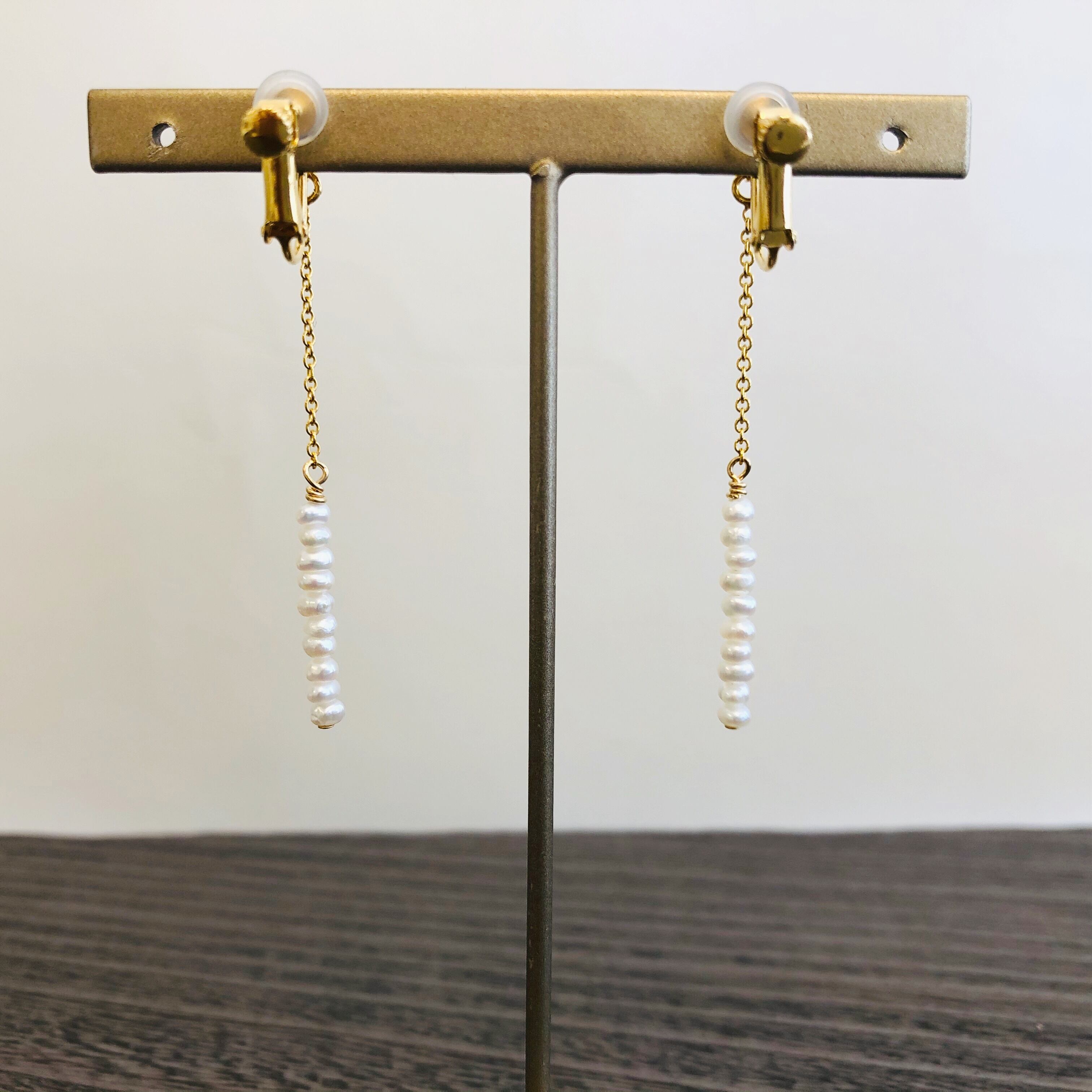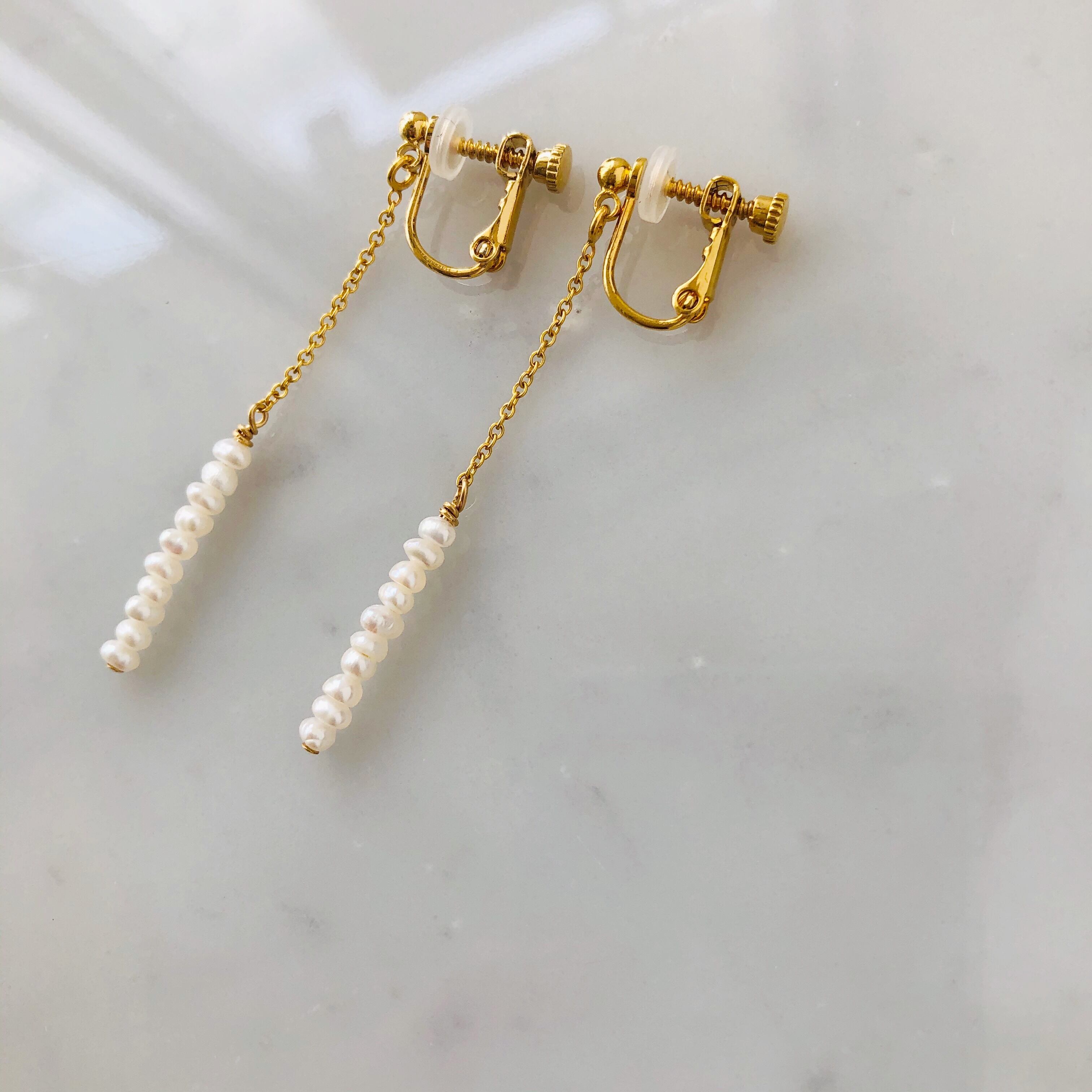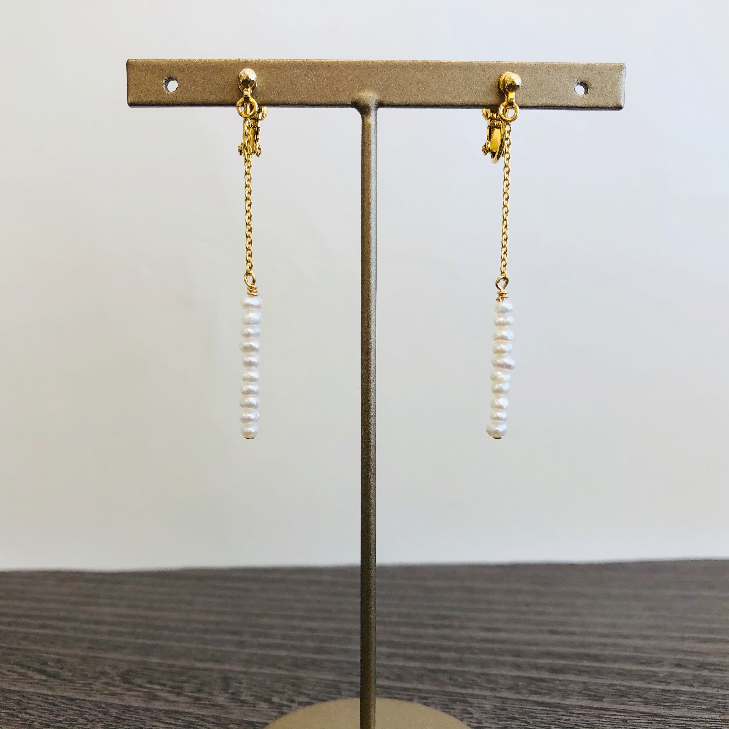 華奢でいびつなパールを使ってイヤリングを作りました。