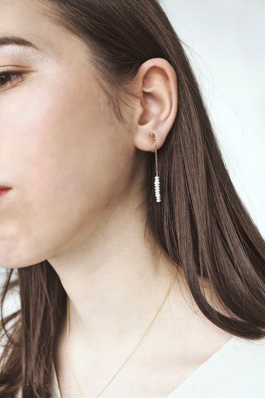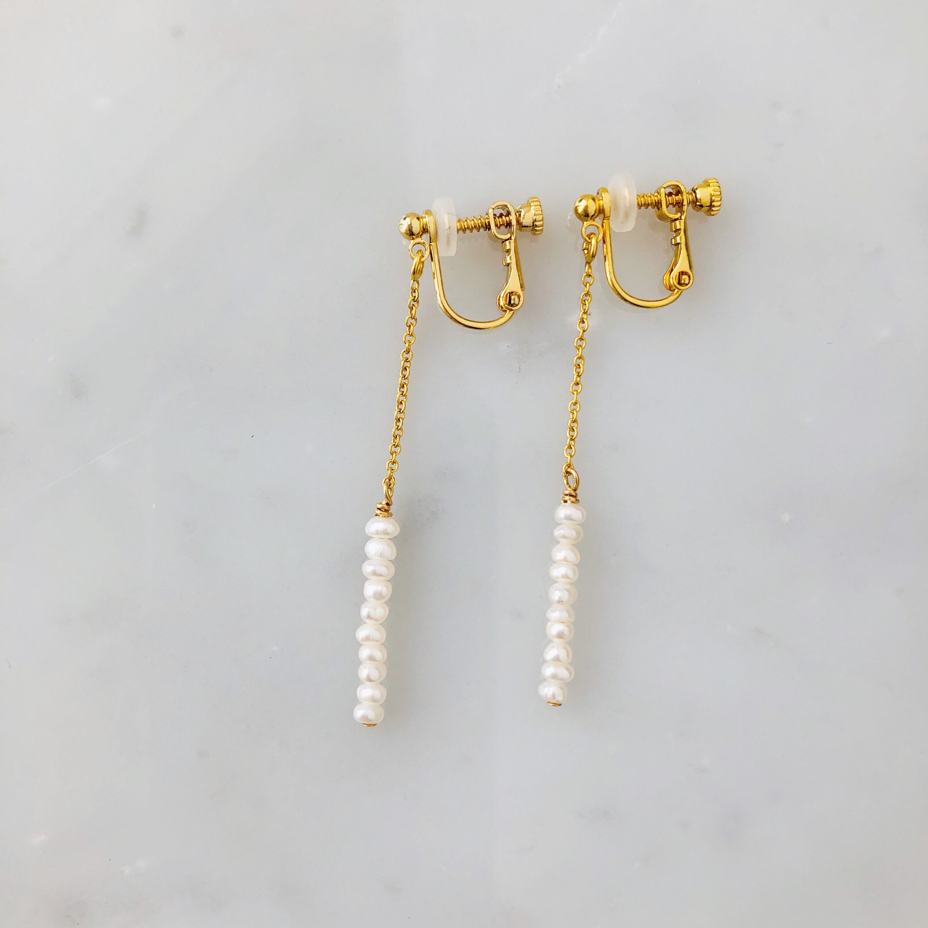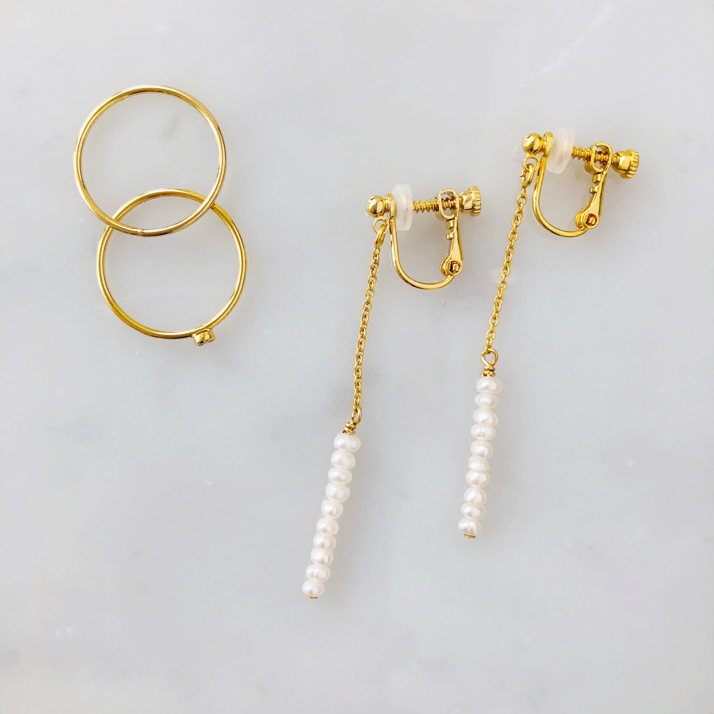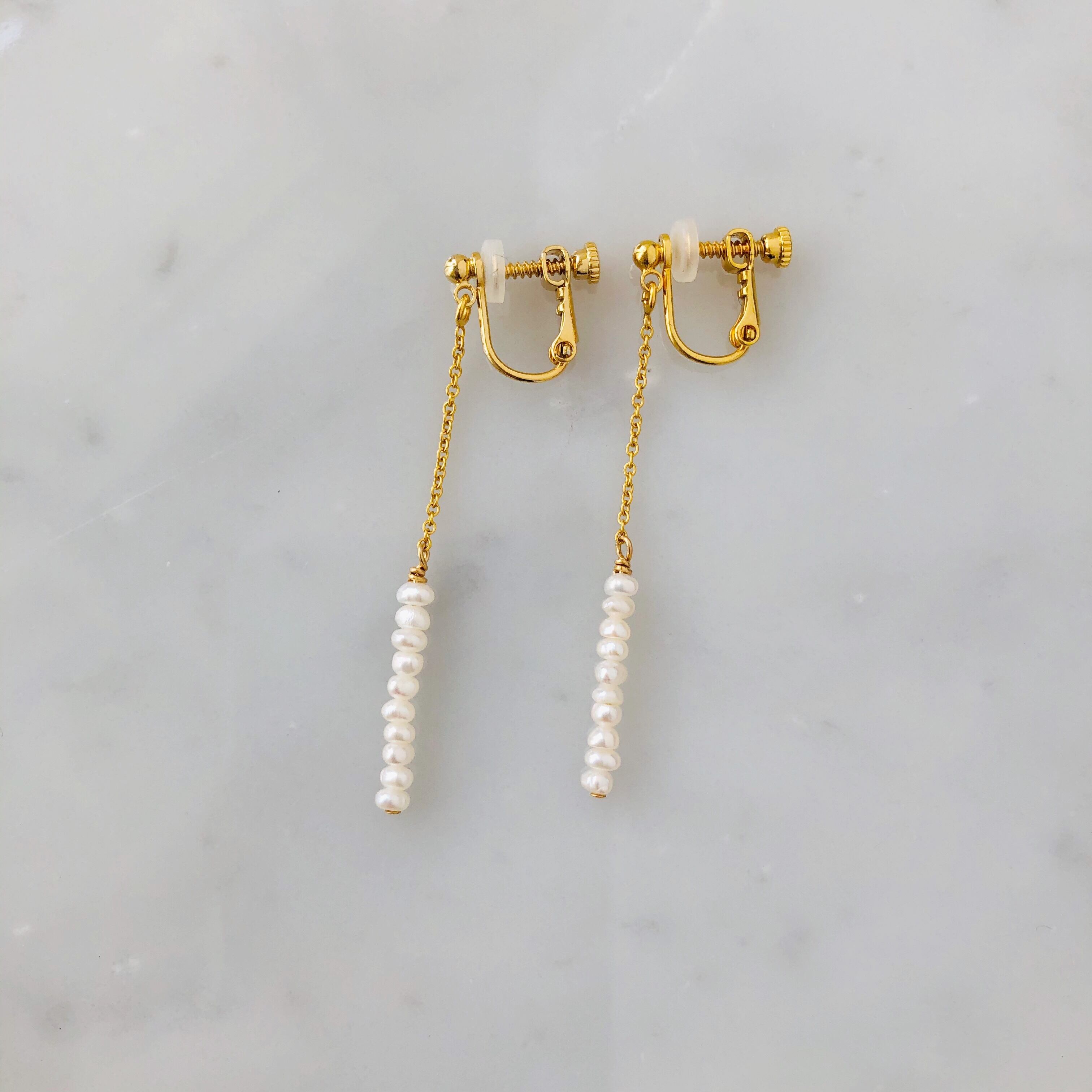 華奢でいびつなパールを使ってイヤリングを作りました。