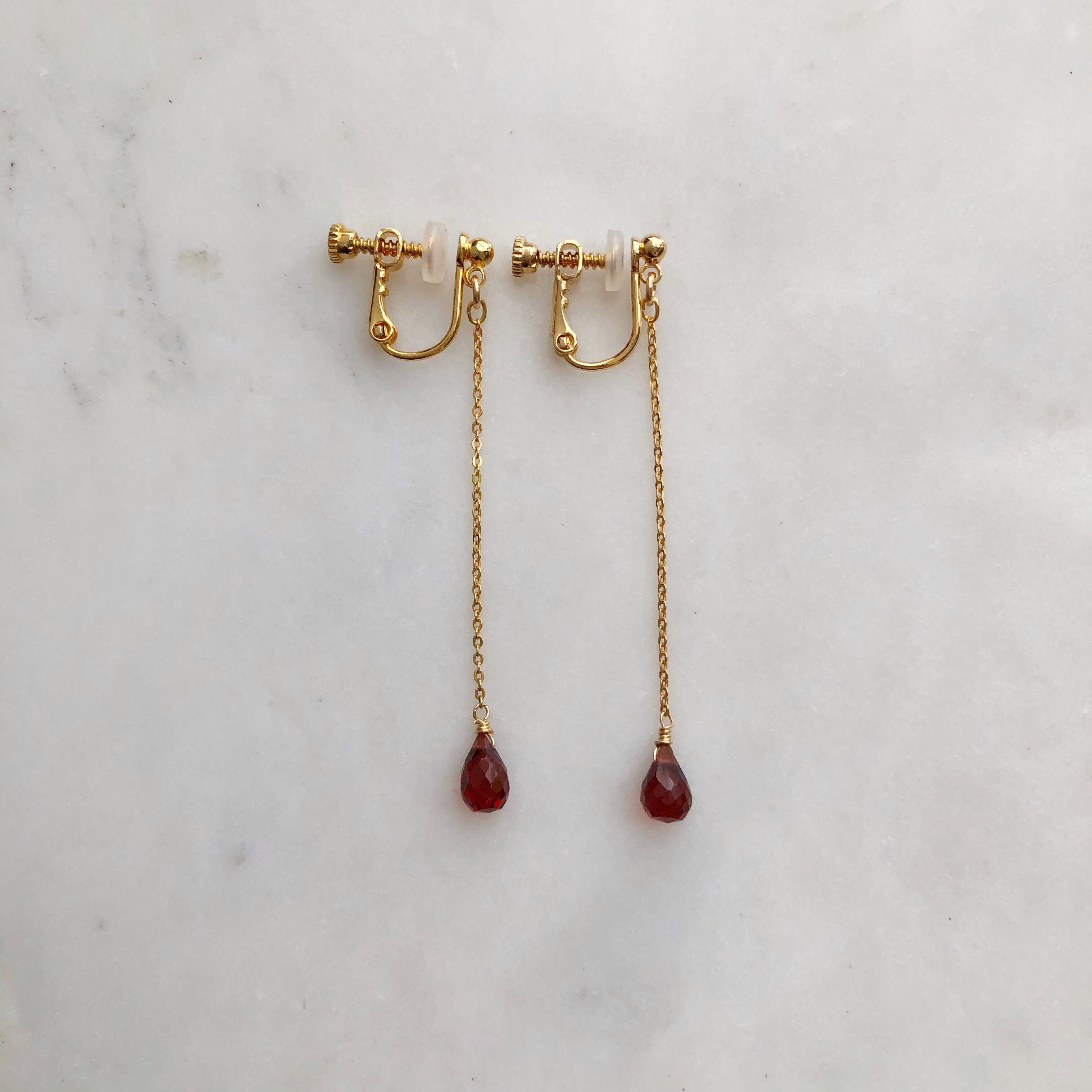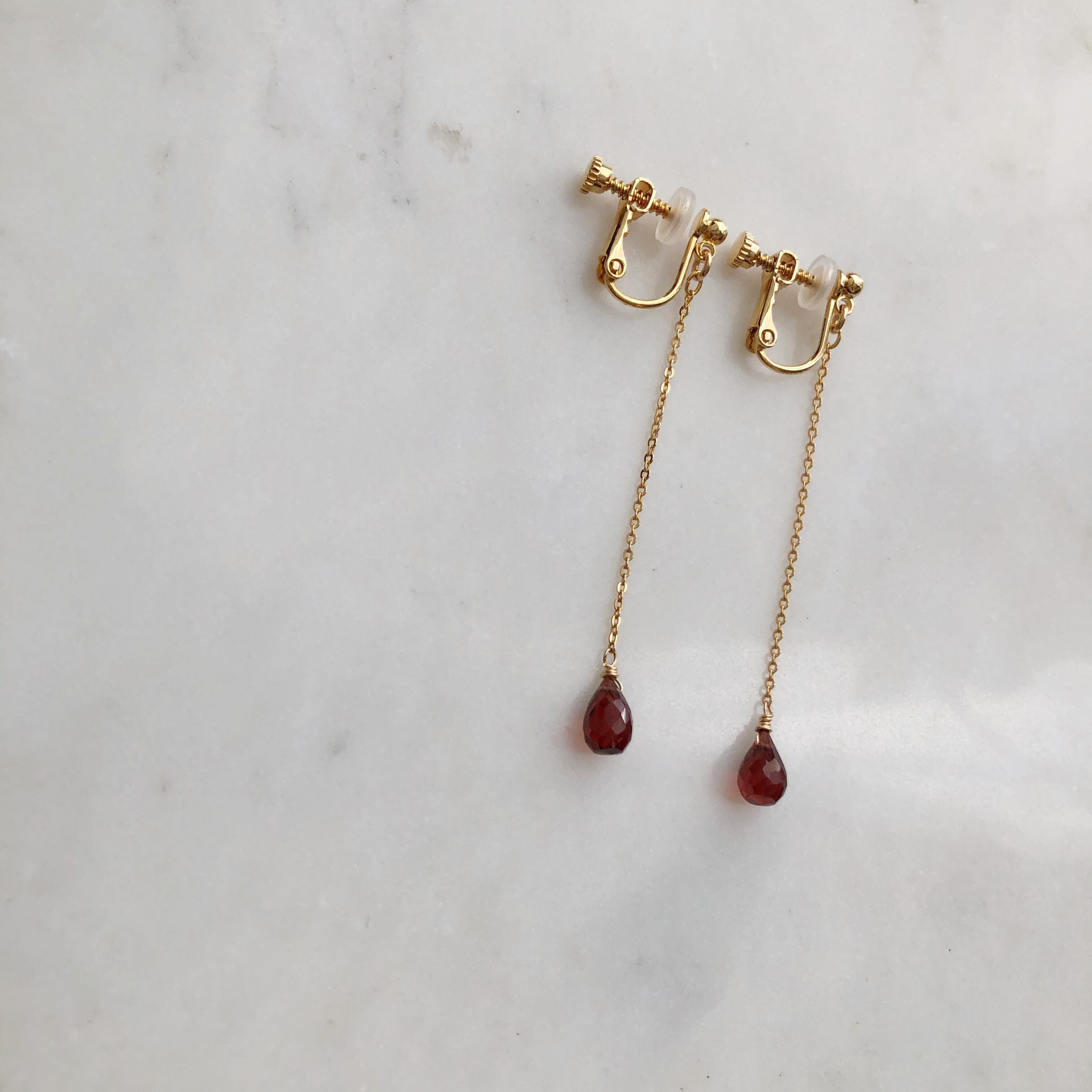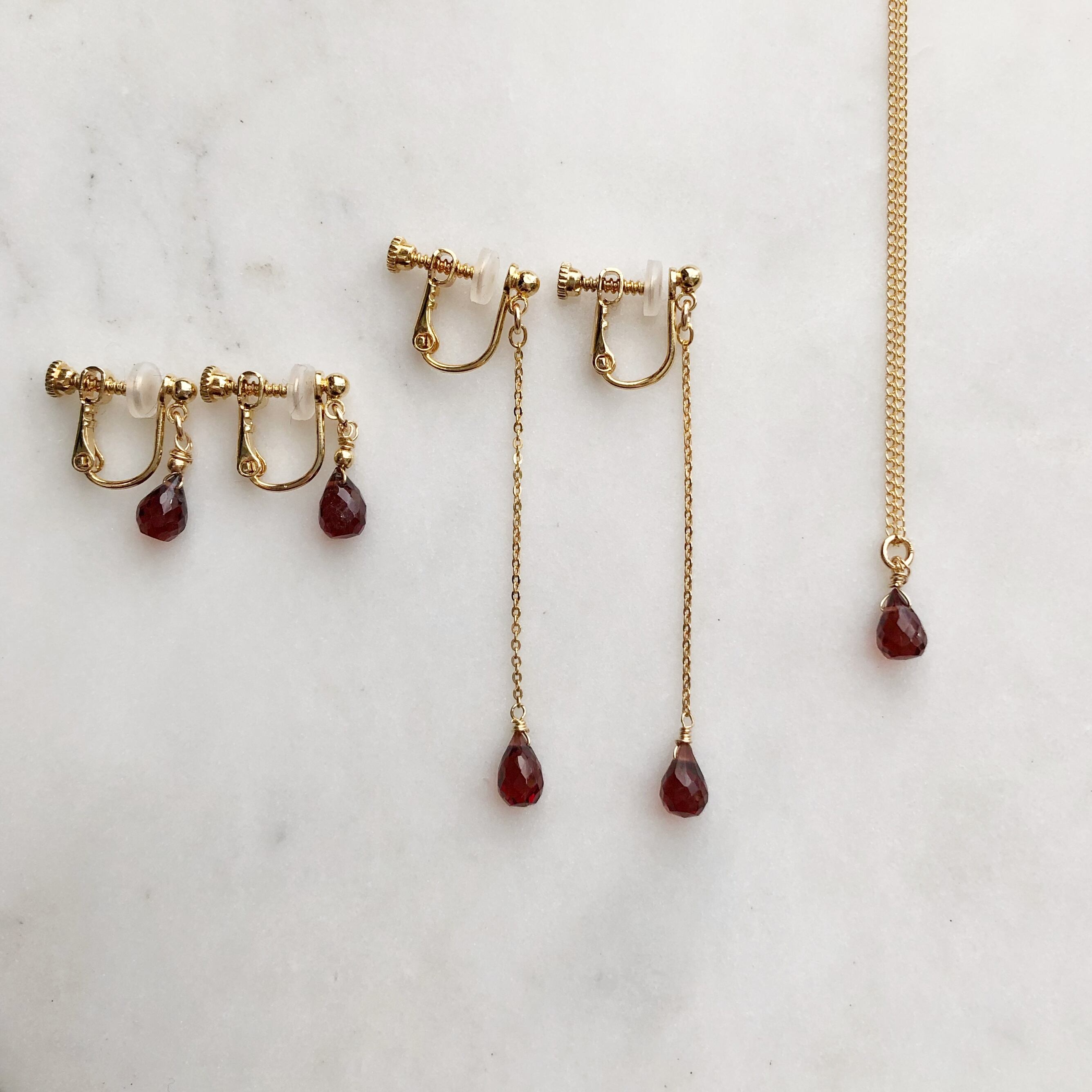 鮮やかな赤いガーネットでイヤリングを作りました。