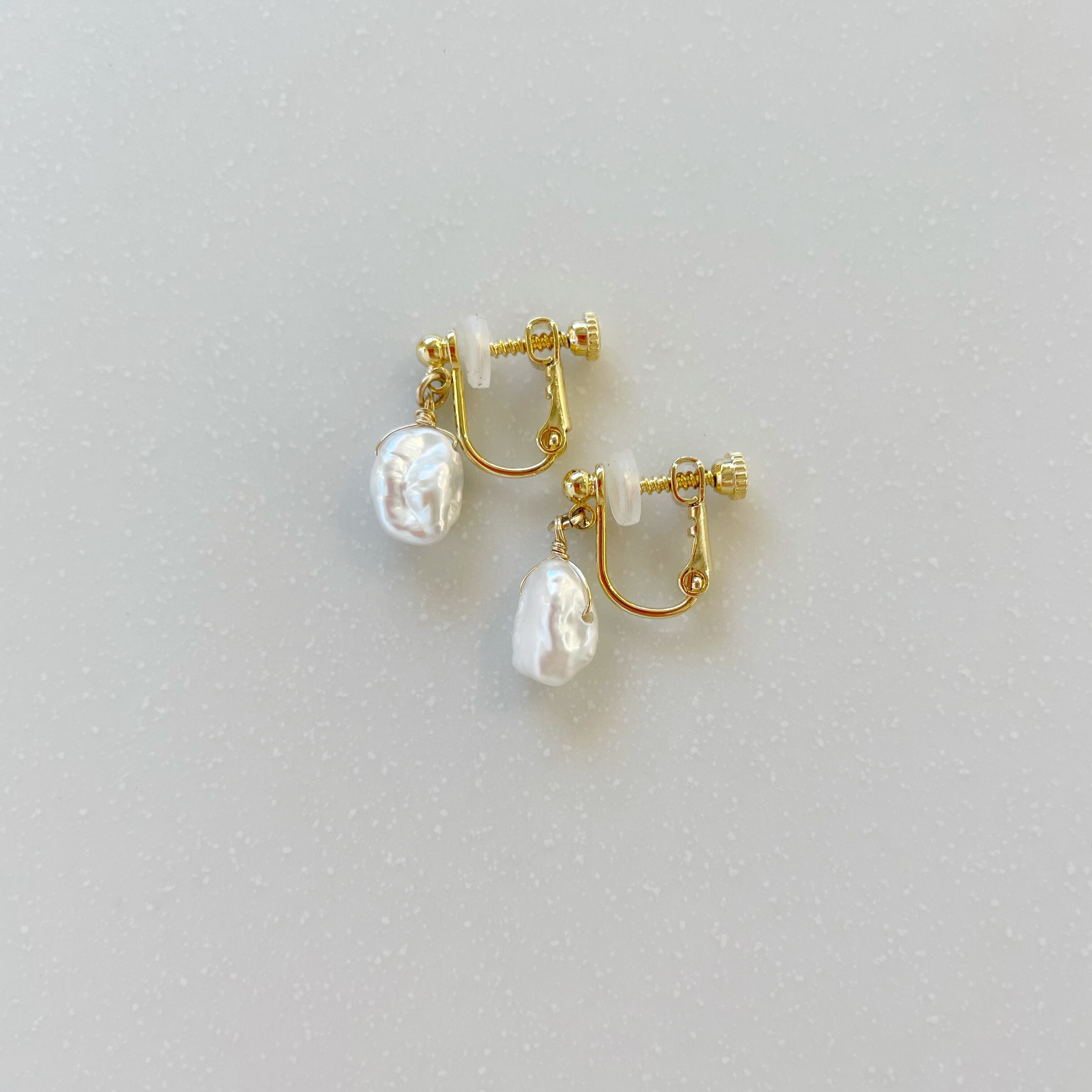 ※イヤリング金具は、メッキのため、汗や香水など汚れに弱く、劣化する素材です。使用後は、柔らかい布で優しく拭き取りジップ付きの袋に入れると比較的長持ちします。長くお使いいただけるように、イヤリング金具の変更も行っています。