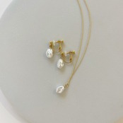 (パールは、綺麗なものを選んでいますが、天然の特有の小さな傷、左右違う形になっています。写真はサンプルです。パールは、一点もののため形状それぞれ少し異なります。天然の形として、楽しんで頂ければ幸いです。)