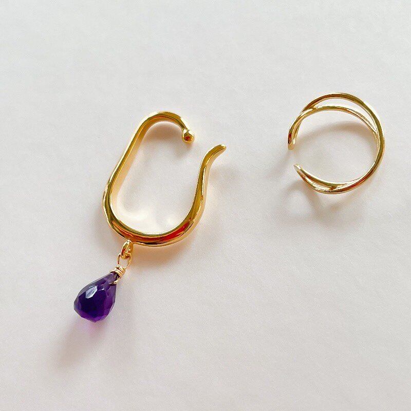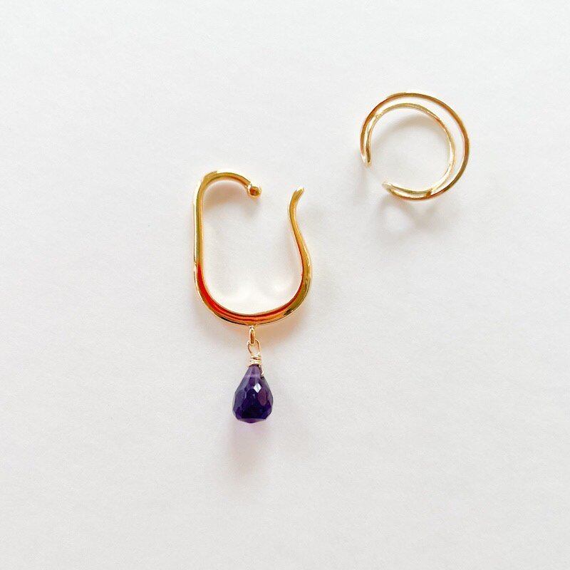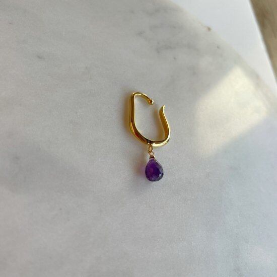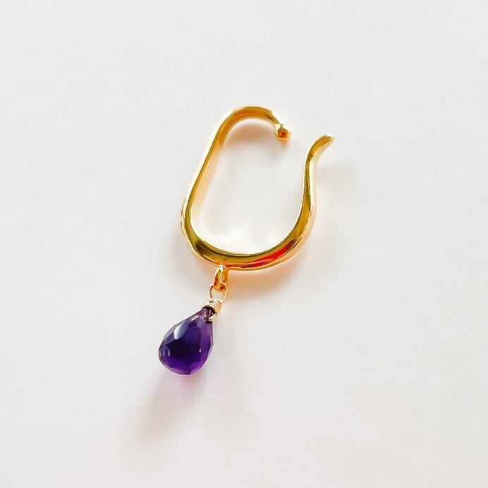深く落ち着いた紫色のアメジストでイヤーカフを作りました。