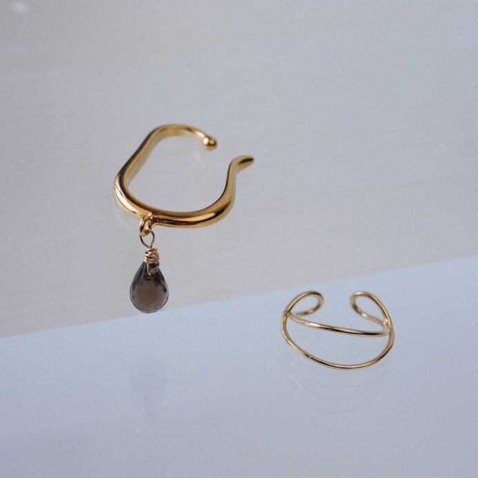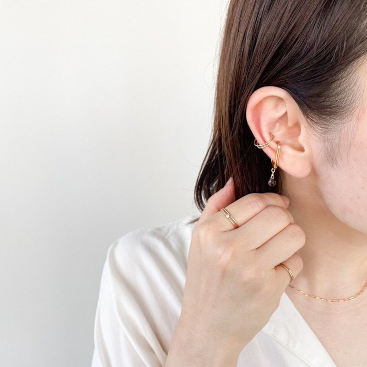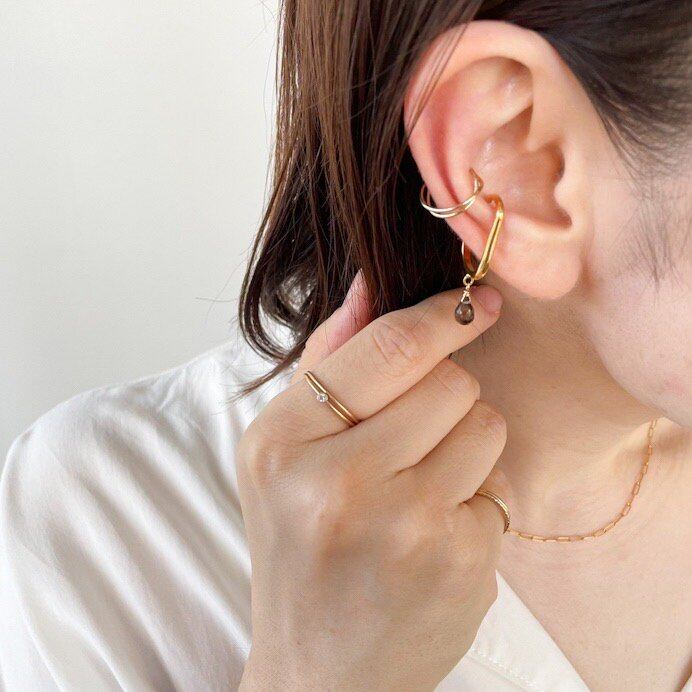 【first】~天然石スモーキークォーツのイヤーカフ~