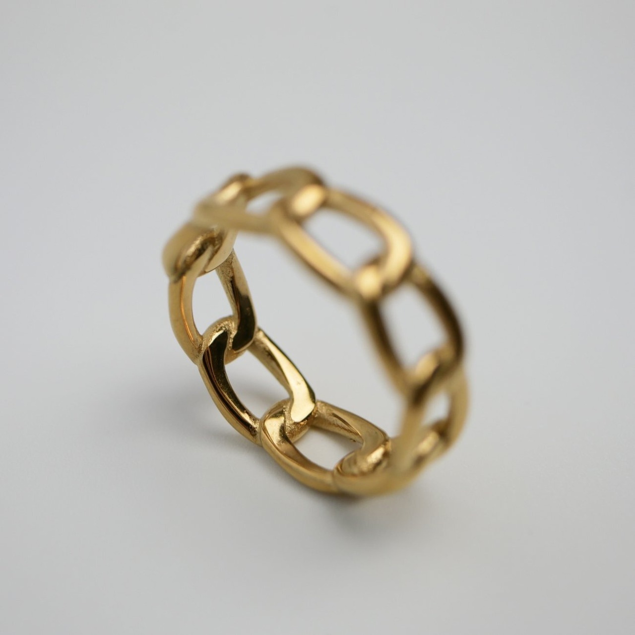 チェーンで結ばれてできたリング。恋人や家族など大切な人と「つなぐ」「絆を深める」意味をリングに込めました。
