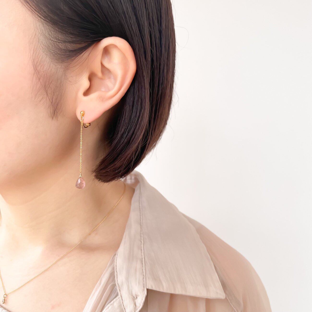 大人の女性がつけれる、落ち着いたピンクのイヤリングがほしくてストロベリークォーツを選びました。天然石のカットが細かいのでキラキラと輝きます。