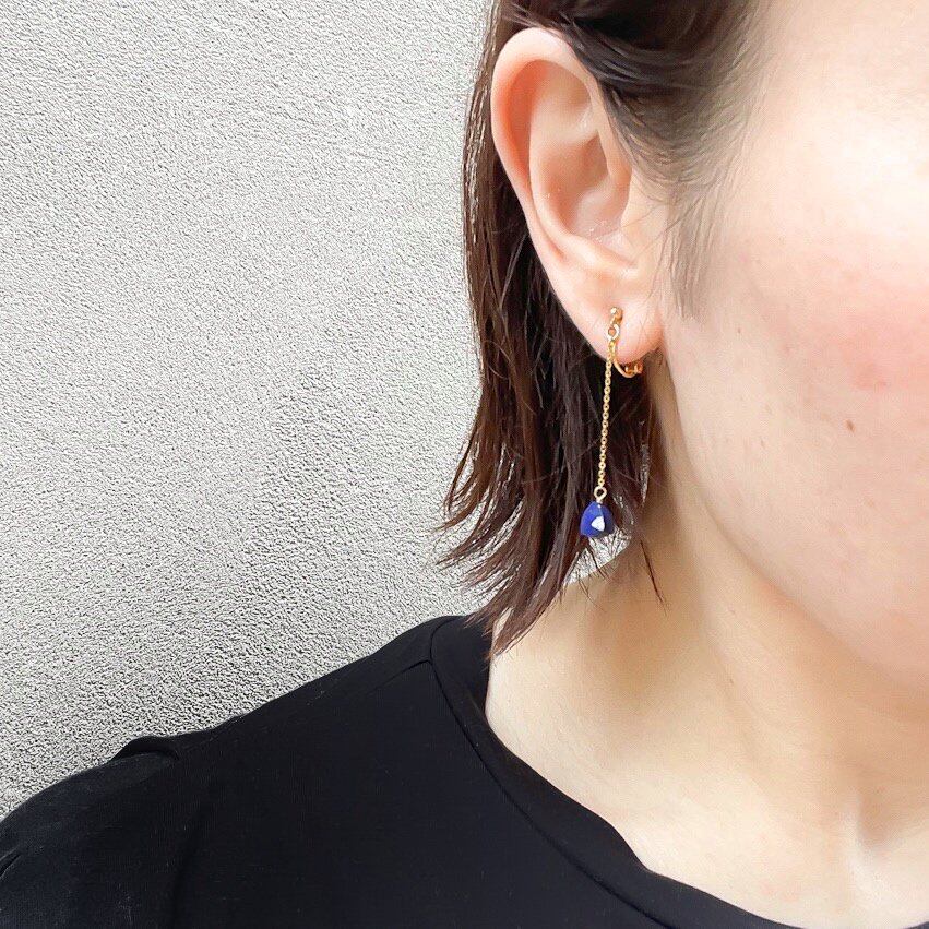 思わず見惚れてしまうラピスラズリのブルーが印象的なイヤリング。